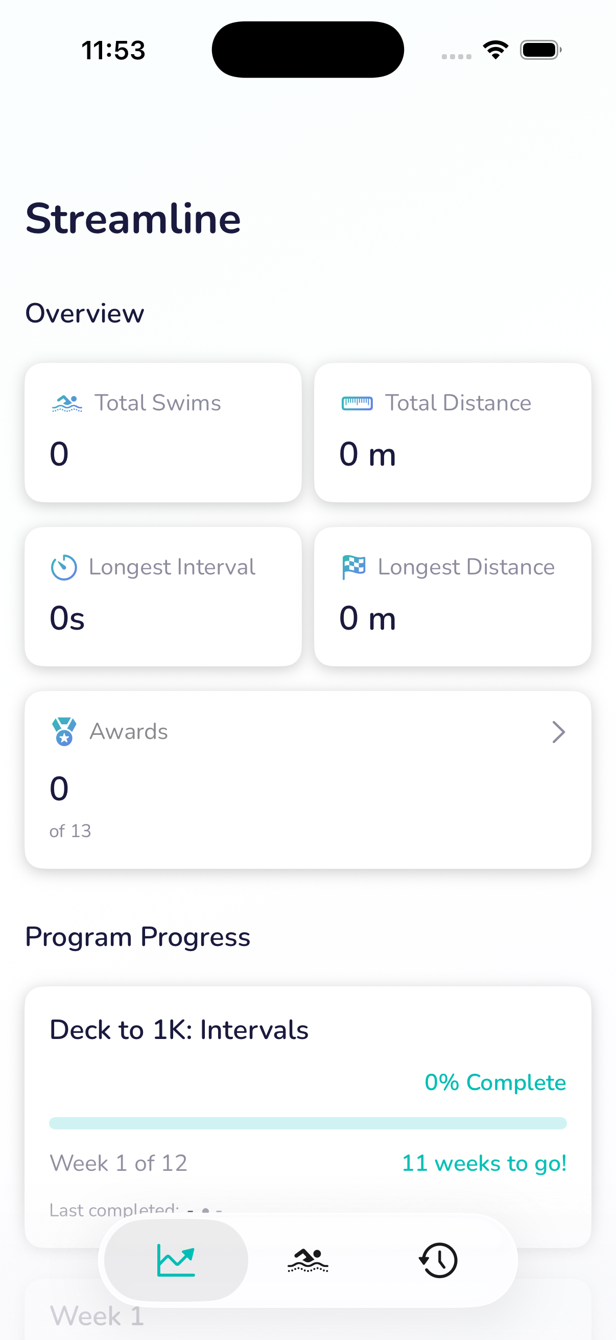 Streamline is a 12-week swimming training app for iOS and Apple Watch that guides complete beginners to 1,000 meters of continuous swimming — one session at a time. Built on progressive-overload principles, it integrates with Apple Health and Apple Fitness and delivers real-time coaching on Apple Watch. No swim background required.